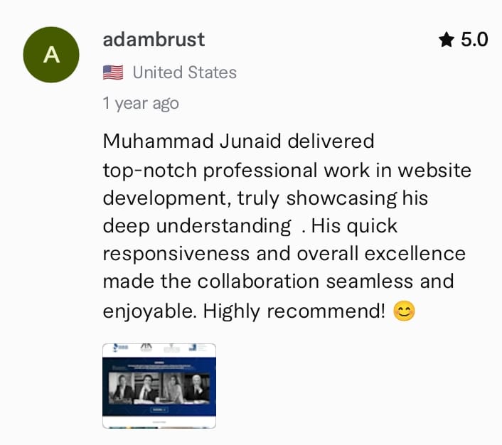 Hi, I am Muhammad Junaid. I have over 7 years of experience in Business websites development and website design. If you are looking for a complete Top-end, up-to-date, professional, and fully responsive WordPress website or business website at affordable prices then you are at the right place. I am known for building stunning and captivating websites for both businesses and individuals !! I would love to help you with your desire website project. I’m a hard-working and dedicated person. Feel free to contact me, Cheers!